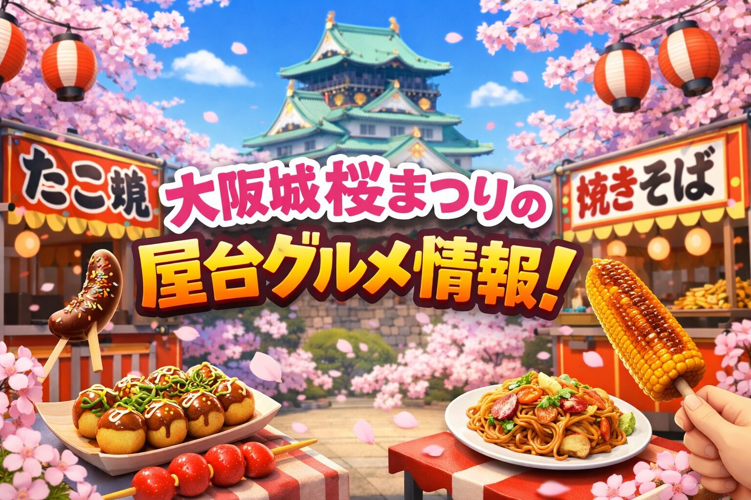 大阪城桜まつり2026は、美しい桜とともに多彩な屋台グルメを楽しめる春の一大イベントです。
